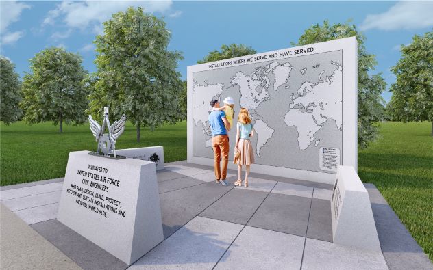 The centerpiece of the memorial will highlight the most visible impact of the Civil Engineer mission—the hundreds of installations where Civil Engineers have served. In 1941, Gen Hap Arnold said, “Air bases are a determining factor in the success of air operations. The two-legged stool of men and planes would topple over without this equally important third leg.” The Museum’s Memorial Park has dozens of memorials rightly dedicated to people and planes, but almost none dedicated to that “important third leg.” The 10x15-foot map of the world on the granite wall will feature engraved colored “dots” signifying active and inactive installations and demonstrate the wide-reaching impact of our career field. The map will include both peacetime and contingency bases where Civil Engineers lived and worked. Nearly everyone who views the memorial will be able to immediately identify with one or more locations where they served and be reminded that Civil Engineers led the way in providing, operating, and maintaining that installation. CE’s Proud Heritage will be on display for all to appreciate.